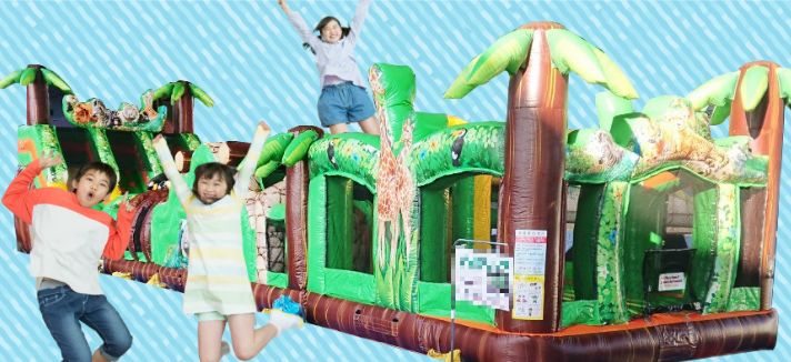 エアー遊具の上で跳んだり跳ねたり滑ったり!