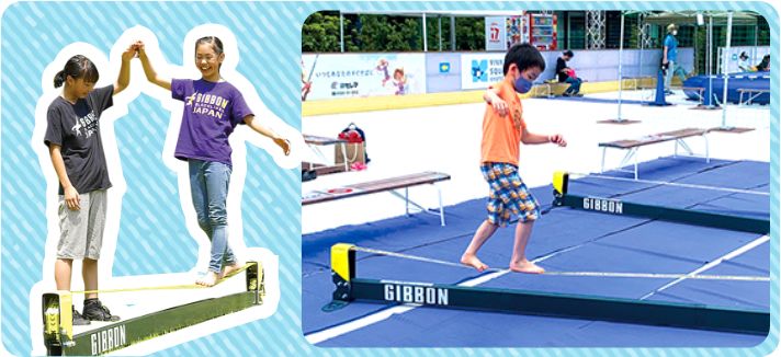 細いベルトのライン上を歩く新感覚スポーツ。
