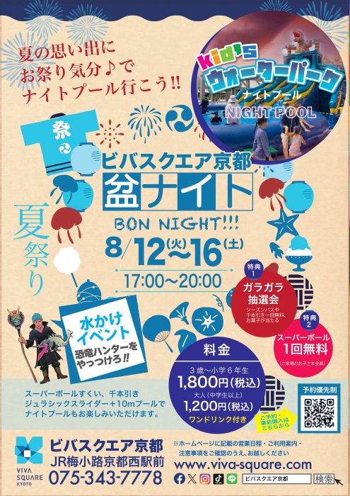 悪天候や不測の事態発生により臨時休業する場合がございます。その場合、ビバスクエア京都のホームページやX(旧Twitter)、facebook、Instagramで営業開始1時間前までにおしらせいたしますので、ご来場前にご確認ください。